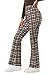 High Waist, Elastic Waistband Back, Plaid Pattern, Flare Trousers, Bell Bottom Pants, Two Side Pockets.