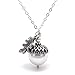 Details: This vintage style sweet acorn necklace is made with a white shade finest quality crystal simulated pearl accented by lovely antiqued silver plated brass acorn bead cap with incredible detailing. On top sits a tiny white simulated pearl to complete the acorn pendant. I've added a cute little pewter oak leaf to give it an extra flair, which moves as you move. The acorn pendant hangs from a delicate Sterling Silver chain which closes with a spring ring clasp.