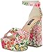 L'Artiste Style: Swan French inspired, beautiful hand-painted premium leather multi strap slide sandal featuring a floral embossed pattern, tonal sitichwork, and an adjustable hook and loop instep straps all on a cork-infused, comfort wedge with a platform.