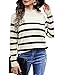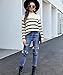 Classic design long sleeve crewneck black and white striped sweater for women is textured and versatiled.