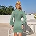Feature: Long puff sleeve style, mock neck, flattering slim fitted, chic bodycon sweater dresses, hits at mid thigh, body hugging. solid long sweaters dress.