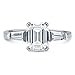 【STONE】 Main stone features 2.1 carat emerald cut cubic zirconia (8.5mm x 6.5mm) in prong setting. Accented with 0.24 ct.tw step-cut trapezoid CZ (5mm x 3mm x 2mm) in bar setting.