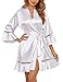 Unique Design. Unique features of ruffled sleeve, ruffled bottom hem, 3/4 sleeve and oblique V-neck. This silk robes for women will make you feel luxurious, elegant and sexy when you put it on. It is great as bathrobe, loungewear, dressing gown, and it will keep you relaxed and comfortable at home