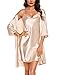 [Satin Robe]: The robes featuring sexy deep v neck,3/4 sleeve,internal tie,removable belt,lace-trim,knee length,Super soft breathable robes for women and fashion style