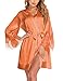 [Satin Robe]: The robes featuring sexy deep v neck,3/4 sleeve,internal tie,removable belt,lace-trim,knee length,Super soft breathable robes for women and fashion style