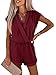 CHIC AND COMFORT ALL IN ONE: The Short Sleeve Jumpsuit Is Perfect For Summer Days, Feeling Cool And Refreshing All Day Long. Wrap V Neck Romper With Snap Closure, It Helps To Cover Your Private Area While Showing Off Your Pretty Neckline, Sexy Yet Elegant. Wide Leg Pleated Pants Romper Is Fashionable And Trendy And Suitable For Women Of Any Shape