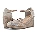 Round-toe ankle-strap espadrille platform wedge sandals with adjustable buckle closure