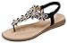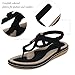 Women's Bohemian T-Strap BlingBling Flip Flops Back Strap Thong Sandals, Black Floral Rhinestones Strap Flats