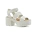 Casual platform sandal featuring strappy upper with hook-and-loop closures at ankle and vamp