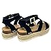 Product Detail : Product Detail : These trendy sandals feature a threaded shark tooth outsole, espadrille jute rope wrap, Flatform platform, adjustable ankle straps, open toe sandal, warn-out vintage fabric, metal studded detail, and low faux wooden wedge.