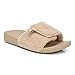 ADJUSTABLE VELCRO BUCKLE slides sandals for womens can adjust according to the width of your wide feet and raised stripes most prevent your feet slip out the slider sandals. 10 colors to choose:black, brown, pink, grey, khaki, beige, rose red, purple, yellow.