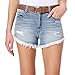 SIZE NOTICE: These womens high waisted butt lifting denim shorts come in JUNIOR SIZING. For reference, model in pictures is wearing size 5. For the best butt lifting denim shorts for women fit, use size chart provided in images. These butt lifting denim shorts for women stop around the above knee area making them your all time favorite!