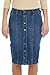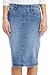 A classic button zipper closure acid wash denim pencil skirt which features a hidden tummy control panel, real front and back pockets and a back slit