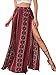 Tribal print, high split hem, elastic high waist, maxi length skirts for women
