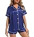 2 PIECE SLEEPWEAER: Our womens pajama sets soft consists of one button-down shirt with elegant V-neck collar design and one part of pants with elastic waist band. The bridal party pajamas for women is designed with a chest pocket for better convenience, the contrast color decorative lines make this ladies pjs set more elegant and stylish.