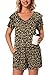 ❤ 【Design】: Cute two piece soft nightwear, double layered ruffle short sleeve top and v-neck design. Elastic waistband short pants with slant pockets, casual, loose and comfortable.