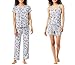 【Features】: This cute womens pajamas sets featuring a V-neck tee, short sleeve pajamas and prints, elastic waistband and drawstring capri pajama bottoms, this two piece pajama set will give you a pleasant sleep experience.