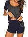 Two-Piece Pajama Set comes with a button-down top and cute boxer short. Short sleeve sleep shirt features button-front PJs style, round collar, contrast color trimmed at the cuff, classic and convenient designs make this pjs sets more stylish and unique. This womens pjs has a loose fit for added comfort. Extra soft, comfy, and breathable sleepwear set for bedtime. A comfortable set of pajamas makes downtime even sweeter, choose the right pj set to get your best night's sleep
