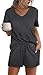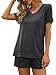 Trendy Style---The top has a classic V neckline. The cute top is perfectly complemented by shorts.Casual and sexy in daily life. The shorts have a trendy plain look and complement the rather simple T-shirt perfectly. The elastic waistband with drawstring is comfortable and gives you enough room to move. this 2 piece short set is the highlight of your wardrobe.