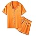【Unique Fashion Designed】: 2 Piece Satin Pajama Set Featuring Relaxed Style, Short Sleeve, Classic Notch Collar, Full Button Design is easy to put on and take off. Cute Print Pj Set With Elastic Waist Contrast Trim Pajama Shorts will give you more comfortable and freendom feeling when you wear it.