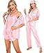 【Premium Material】--- This 4 piece pajama set is made of high-quality satin(95% Polyester, 5% Spandex), which is very soft, lightweight, and comfortable. This lightweight pajama set has a silky texture that will make you feel smooth and shiny, never pilling or fading, and help you sleep well, dreamlike.