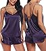 Cami pajama set women shorts featuring a plunging v neck, decent lace trim and adjustable shoulder straps, simple and stylish, shows off your body curves in nice coverage way