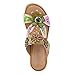 L'Artiste Style: Adelanda Unique detailed embossed and laser cut-out leather slide sandal with flower motives and a hook and loop closure for adjustability on a cork infused wedge platform.