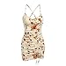 ♡Features:Sexy v neck bodycon mini dresses with floral print design,elegant drawstring ruched style,backless criss cross string in the back,side split short slip dress,adjustable spaghetti straps to accent the shoulders.
