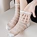 ❥【Size & Packing】Medium Size. Fits for US women shoe size 5-7.5. Sock length 24cm, top to heel length 17cm. It contains 5 Pairs transparent see through lace mesh high ankle sheer crew socks with different patterns.