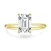 Emerald cut Forever One Moissanite engagement ring, featuring 2.00ct or 9x7mm emerald cut moissanite set with 4 claw prongs on 14K yellow gold.