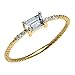 UNDERSTATED ELEGANCE - This stunning 14KT yellow gold diamond accented aquamarine solitaire ring from Claddagh Gold is the perfect way to show her you care. Set with an emerald shaped light blue aquamarine, March’s birthstone, surrounded on each side by three petite white diamond accents. The remainder of the slender band is fluted and looks like a thin rope. in the center flanked by two round genuine white topaz gems. This ring is an elegant statement piece she will be proud to wear every day.