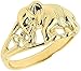 STRENGTH & GOOD FORTUNE - This stunning 10KT yellow gold elephant ring features your favorite pachyderm in profile with trunk raised in a symbol of good fortune and prosperity. The elephant is situated in the elliptical opening of the ring sculpted in such intricate detail that you expect him to march off the band and across your finger! Each piece is crafted and individually polished to gleaming perfection by our team of US based artisans.