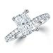 MATERIAL: This modern classic Moissanite side stone engagement ring features a glamorous D Color VVS1 Clarity Lab Created Diamond, Radiant-Cut Moissanite center stone held in duoble claw. A series of AAAAA+ brilliant accents pave set in 14K White Gold Vermeil solid S925 Sterling Silver, handcraft inlaid and polished, strong and endurable, born to be shine forever.