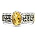 UNMISTAKABLE ELEGANCE - This glamorous handcrafted 14Kt yellow gold ring by Le Vian features an oval cut citrine inside a halo of round white diamonds. The ring has a wide tapered shank pave encrusted with four rows of diamonds with white diamond borders and a fancy brown diamond studded interior with black rhodium plated settings. The tapered band has fluted edges. Make the most of the Le Vian Grand Sample Sale and grab this engagement ring now for the perfect proposal!