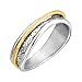 A mobile gold-plated sterling silver band floats in the center of this textured and lightly scalloped ring, perfect for keeping your minimal style in the details. The two-tone color makes the ring more unique. Wear it solo or stack with other rings to show your individuality. Piece comes with a “.925” sterling silver quality stamp as a symbol of guaranteed product quality.