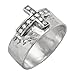 Make a statement about your faith with this cross ring. The ring features a modest wide band setting trimmed in sparkling cubic zirconia stones, crafted in sterling silver. Make this statement ring your new favorite piece by stacking it with other dainty rings or wearing it solo for a bold look. Consider ordering one size up as the wide nature of this ring may cause it to fit snugly. The piece comes with a ".925" sterling silver stamp as a symbol of guaranteed product quality.