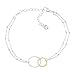 This two-tone bracelet is perfect for gifting to a true friend. Interlocking circles, one sterling silver, the other gold-plated, are strung along a dual-strand beaded sterling silver chain for eclectic detail. Beads stationed across the strands bring this stylish bracelet up to another level! Piece comes with a ".925" sterling silver quality stamp as a symbol of guaranteed product quality.