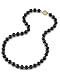 Classic round pearl necklace strand with genuine dyed black Japanese Akoya saltwater pearls and 14K gold clasp in 18 inch princess length.