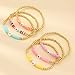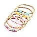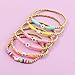 Beaded bracelet set features 6 strands multicolored polymer clay vinyl discs bracelet adorned with gold beads ,they’re set in a stretch cord to effortlessly slip on and off as you go about your day. Wear them stacked together or one at a time.