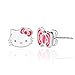 Hello Kitty earrings in a stylish mismatched deisgn. Hello Kitty stud earrings feature one enamel-plated Hello Kitty face earring and one enamel-plated bow earring that matches back to the other earring