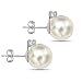 Silver Pearl and CZ Stud Earrings for Women Measures 1 1/8" Long; Genuine Silver Platinum Plating with Rhodium for Endless Shine and Durability, Round Pearls Measures 4mm - 6mm - 8mm