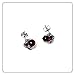 Mismatched earrings featuring black bubble heart detailed with small crystal accent and lovely bows. Earrings are set in black plated metal with a lever back closure.