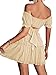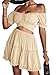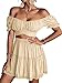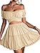 Elastic ruffle trim cuffs and puff short sleeve, this crop top could be worn off the shoulder or scoop neck. Cute crop blouse with tie up, tie it up at back or front, warp hem off the shoulder bardot crop top.
