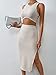 Women two piece set with a one shoulder crop top and a high waist split hem long skirt, easy to dress up or down, you can wear the pieces separately.