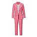 Design: Women's colorful suit set. Blazer-one button, notched lapel, special button type, long sleeve, two side pocket; Pants-button and zipper closure, belt loops, straight leg