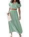 Feature: Deep v neck, wrap front, short puff sleeve, crop top with elastic hem, sexy and attractive style, solid color a-line long skirt with elastic waistband, two pockets.