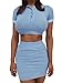 ❤Size and Color: There are 3 sizes: S, M, L, so please check the size charts below carefully before order and there are 2 colors: blue and pink. bodycon skirt 2 pieces set,Sexy Outfits Crop Top + skirt outfit set.