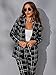 Features: houndstootn, button front, stand collar, casual style