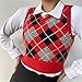❀Red Argyle Sweater Vest ----: Sweet Cropped Plaid Sweater Vest are in high-quality fabric Acrylic and spandex, is a stretchy knitted fabric, comfortable, and smooth hand feeling, very wearable that feels great against the skin. Suitable for kids,sexy girls,slim wowen.