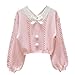 Sweet preppy style slim-fit cropped sweater top with cute decorative bow tie and balls on front, easy to pair with jeans, skinny pants, skirts for a lovely casual everyday look